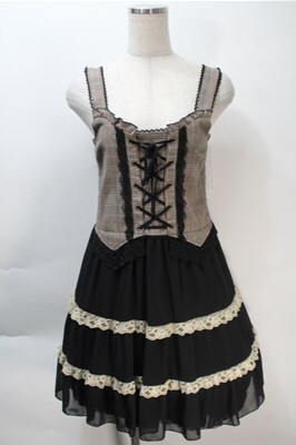 axes femme / チェック柄切り替えシャーリングキャミワンピース ブラウンx黒 S-25-10-20-040-AX-OP-HR-ZS [戻る]