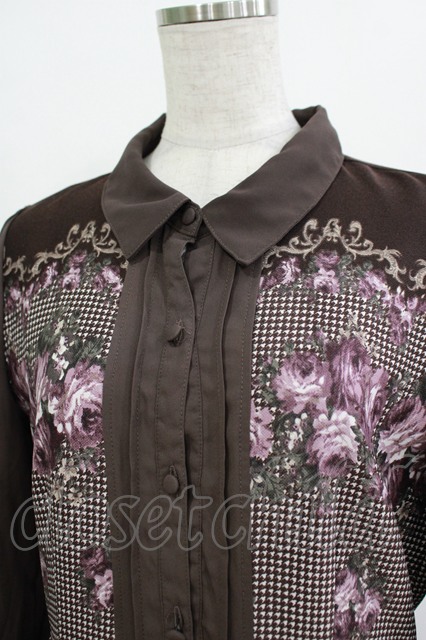 axes femme / バラ×千鳥柄襟付ワンピース M ブラウン H-25-10-27-017-AX-OP-NS-ZH