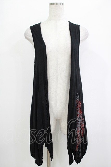 Ozz Croce / バックレースアッププリントジレ 黒 H-25-10-27-050-OO-TO-KB-ZH