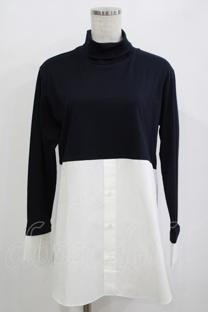 Jane Marple Dans Le Salon / Crumple collar pullover ネイビー×オフホワイト H-25-10-27-045-JM-TO-KB-ZH
