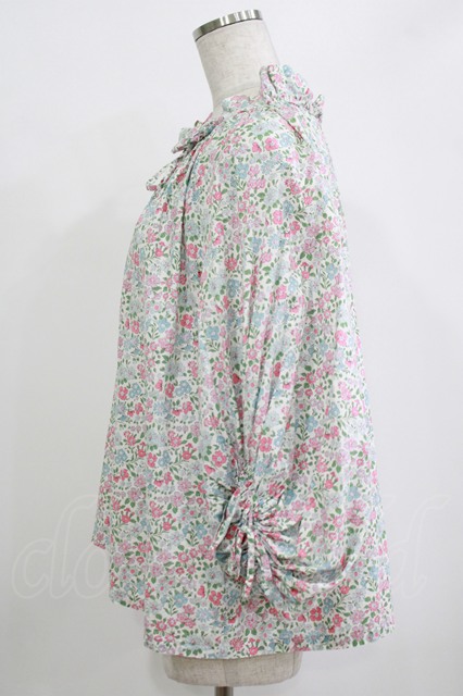 Jane Marple Dans Le Salon / Lawn Liberty Bubble Sleeve Blouse オフ×ピンク×ブルー H-25-10-27-033-JM-BL-KB-ZH