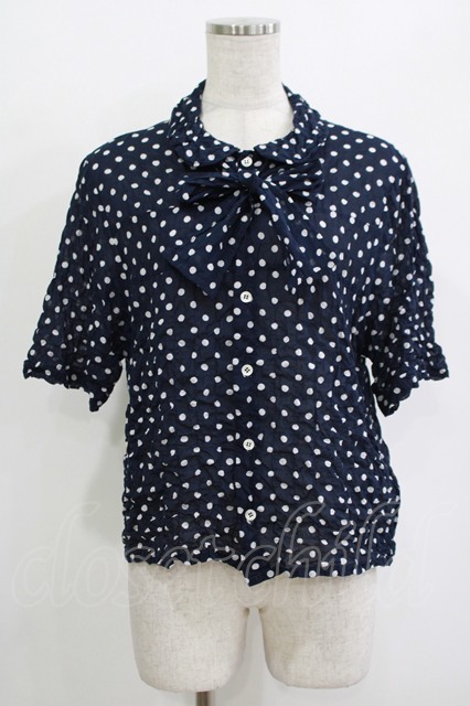 Jane Marple Dans Le Salon / Polka dotsリボンシャツ ネイビー H-25-10-27-027-JM-BL-KB-ZH [戻る]