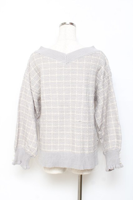 axes femme / Vネックツイードニット F グレー Y-25-10-20-027-AX-TO-SZ-ZY
