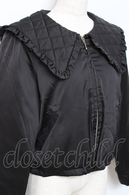 axes femme POETIQUE / キルティングビッグ襟ブルゾン M 黒 Y-25-10-20-035-AX-JA-SZ-ZY