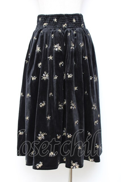 axes femme / 総刺繍ベロアスカート M クロ Y-25-10-20-108-AX-SK-SZ-ZY