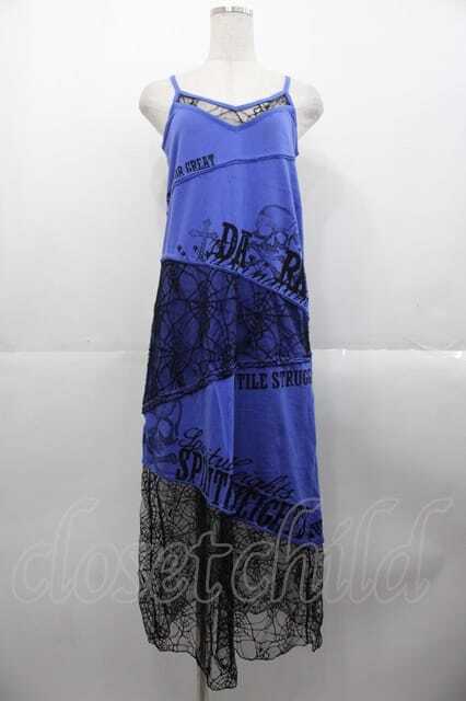 GHOST of HARLEM / 蜘蛛の巣レース切替キャミカットワンピース 青X黒 I-25-10-21-063-GL-OP-SA-ZI
