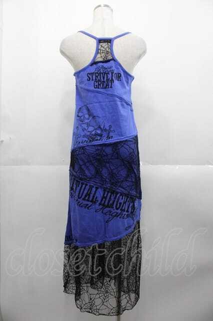 GHOST of HARLEM / 蜘蛛の巣レース切替キャミカットワンピース 青X黒 I-25-10-21-063-GL-OP-SA-ZI