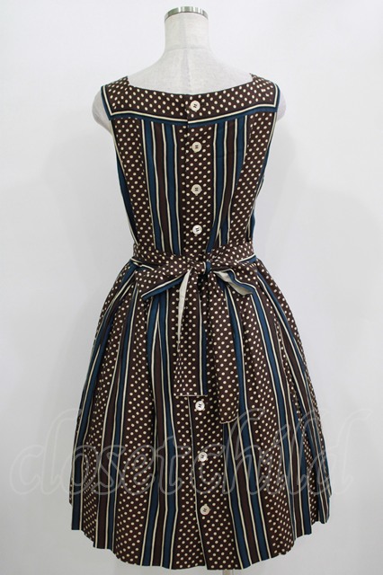 Jane Marple / ドットストライプのスクエアドレス ネイビー×ブラウン H-25-10-28-020-JM-OP-KB-ZH