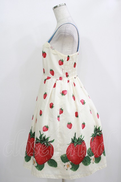 Leur Getter / ストロベリープリントリボンブローチ付キャミワンピース オフ H-25-10-28-038-LU-OP-KB-ZT075 [戻る]