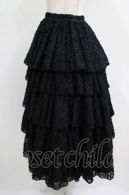 MARBLE / 5段フリルロングボリュームスカート 黒/ラメシャギー H-25-10-28-046-GO-SK-KB-ZH