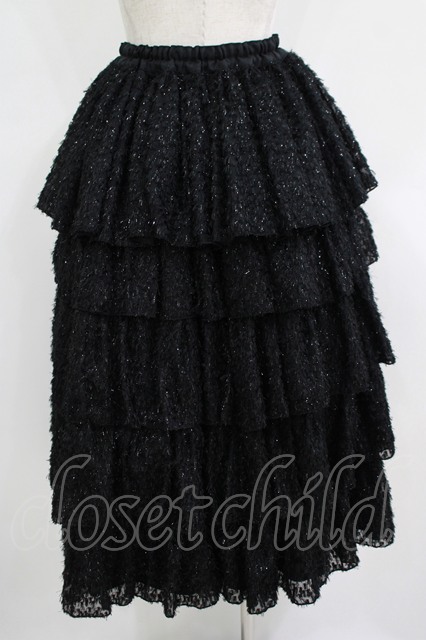 MARBLE / 5段フリルロングボリュームスカート 黒/ラメシャギー H-25-10-28-046-GO-SK-KB-ZH [戻る]
