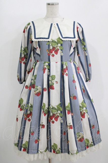 Melody BasKet / Stripe strawberryワンピース ネイビー H-25-10-28-031-LO-OP-KB-ZT191