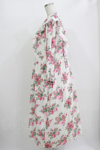 Jane Marple / Strawberries and flowersラッフルフリルドレス オフ H-25-10-28-014-JM-OP-KB-ZH