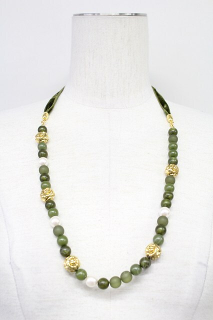 INGEBORG / パールリボンネックレス グリーン T-25-10-29-040-LO-AC-SA-ZT