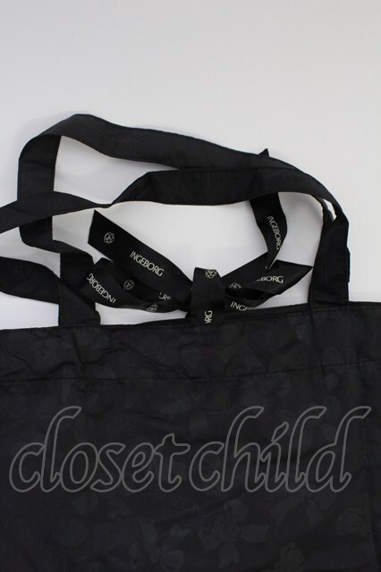 INGEBORG / リボンプリントバッグ 黒 T-25-10-29-015-LO-BG-SA-ZT