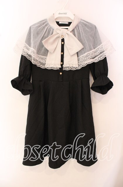 NOEMIE / 5分袖ダブルクロスケープワンピース クロ×シロ O-25-10-23-082-LO-OP-IG-OS