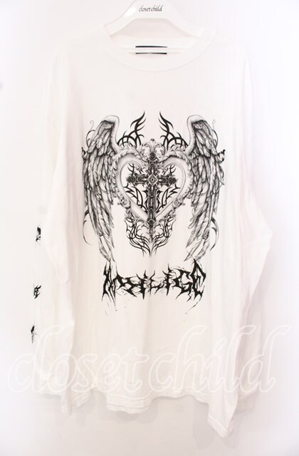 Amilige / ハートクロス羽プリントロングTシャツ シロ O-25-10-23-056-PU-TO-OW-OS