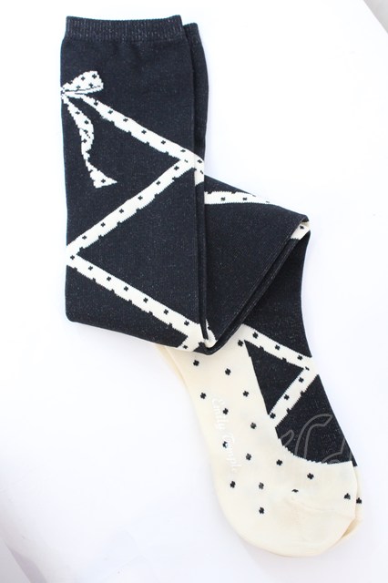 Emily Temple cute / トゥシューズオーバーニー クロ×アイボリー O-25-10-23-1026-ET-ZA-IG-OS [戻る]