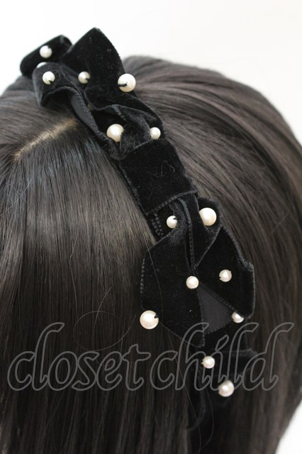 Emily Temple cute / パール&ベルベットリボンカチューシャ クロ O-25-10-23-1014-ET-AC-IG-ZT012
