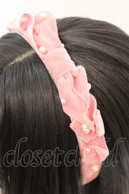 Emily Temple cute / パール&ベルベットリボンカチューシャ ピンク O-25-10-23-1015-ET-AC-IG-ZT012