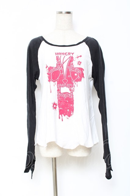 HANGRY&ANGRY / プリント長袖カットソー 白×黒 Y-25-10-25-092-HN-TO-SZ-ZY [戻る]