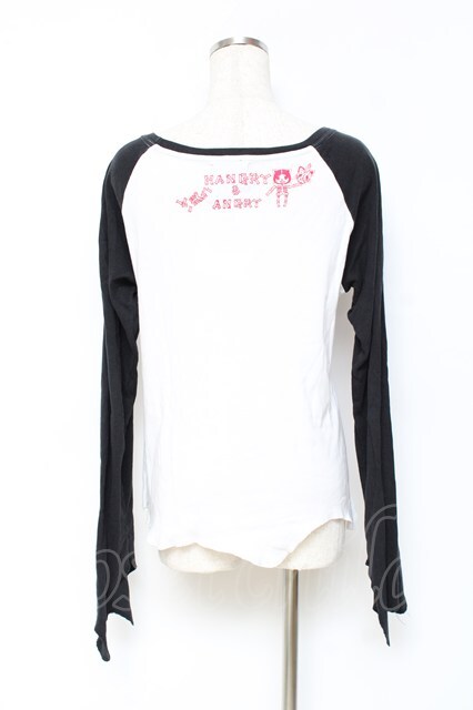 HANGRY&ANGRY / プリント長袖カットソー 白×黒 Y-25-10-25-092-HN-TO-SZ-ZY