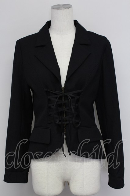 PEACE NOW / ジップアップ編み上げジャケット M ブラック T-25-10-24-016-PU-JA-SA-ZT