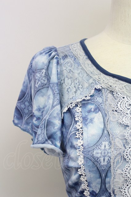 OZZ ANGELO / 天使窓風プリント半袖チュニック 青 T-25-10-24-021-OO-TO-SA-ZT