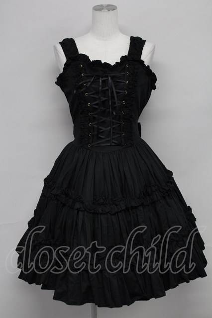 ATELIER PIERROT / 編み上げジャンパースカート 黒 T-25-10-24-025-EL-OP-SA-ZT