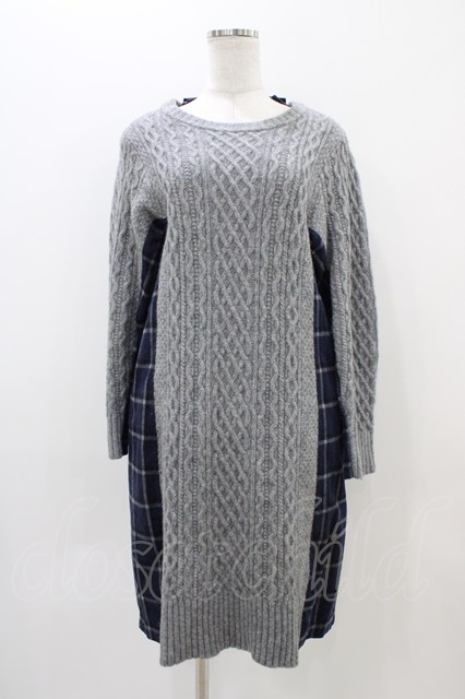 Jane Marple Dans Le Salon / アランニットとシャギーチェックのドレス グレー×ネイビー H-25-11-01-1018-JM-OP-KB-ZH