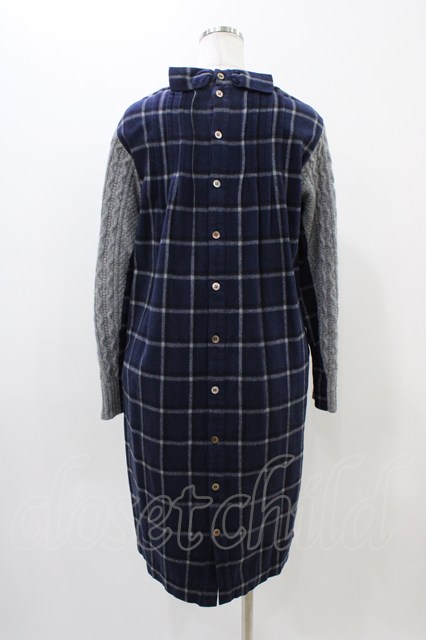 Jane Marple Dans Le Salon / アランニットとシャギーチェックのドレス グレー×ネイビー H-25-11-01-1018-JM-OP-KB-ZH