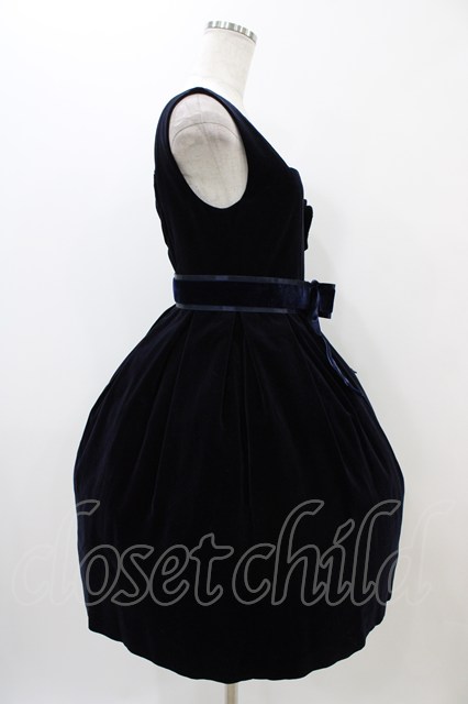 Jane Marple / クラウンEMBブローチ付別珍ドレス ネイビー H-25-11-01-1008-JM-OP-KB-ZH