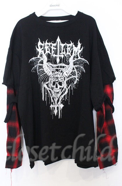 REFLEM / フェイクレイヤードチェックロンT F ブラックxレッド O-25-10-24-056-PU-TO-YM-OS