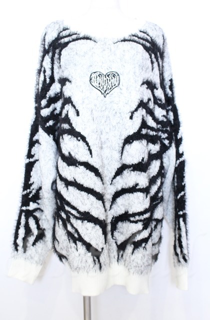 BACKSTAGE PASS / X-ray-KNIT(Xレイニット)フェザーモールニットソー F ブラックxホワイト O-25-10-24-026-PU-TO-YM-OS [戻る]