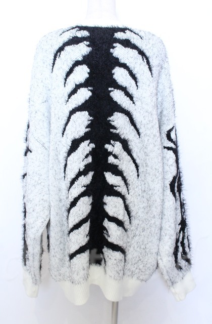 BACKSTAGE PASS / X-ray-KNIT(Xレイニット)フェザーモールニットソー F ブラックxホワイト O-25-10-24-026-PU-TO-YM-OS