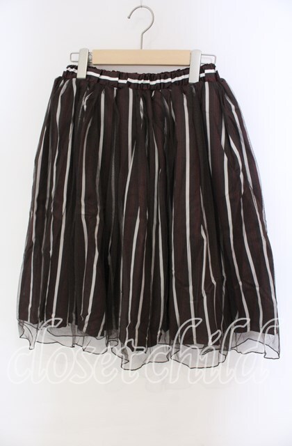 axes femme / サテンストライプチュールレイヤードスカート ブラウン O-25-10-25-027-AX-SK-IG-OS