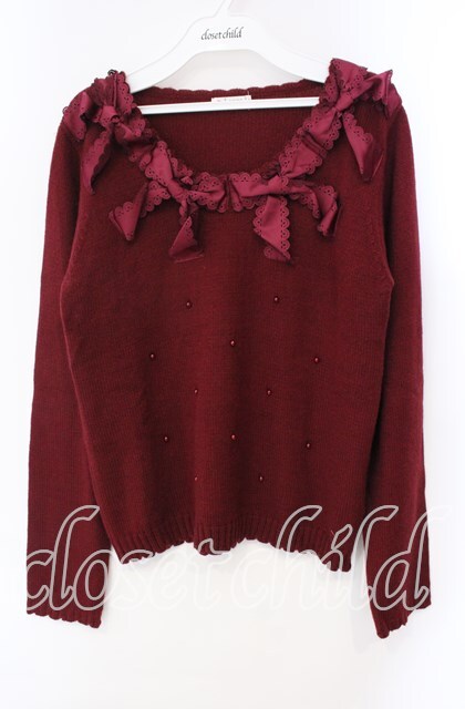 axes femme / リボンデザインニットプルオーバー ワイン O-25-10-25-040-AX-TO-IG-OS
