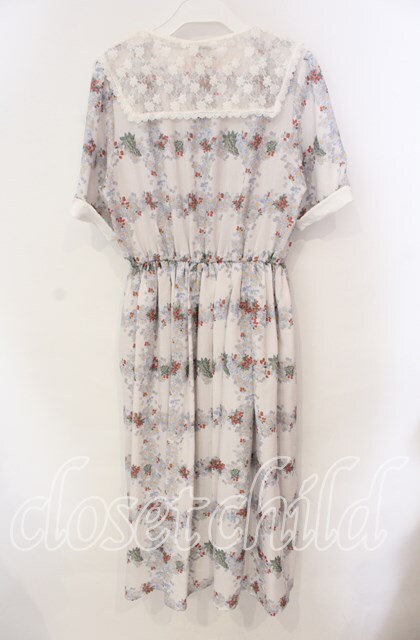 Fi.n.t / レース付け衿レトロフラワーチェック柄ワンピース アイボリー×ブルー O-25-10-25-068-CA-OP-IG-OS [戻る]