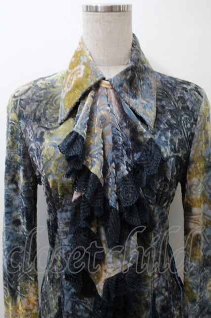 Ozz On / ベロア切替柄シャツ サックス S-25-10-24-1023-OO-BL-AS-ZS