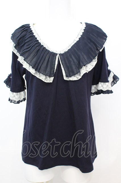 axes femme / ゴージャスフリル袖プルオーバー M ネイビー O-25-10-25-1008-AX-TO-IG-OS