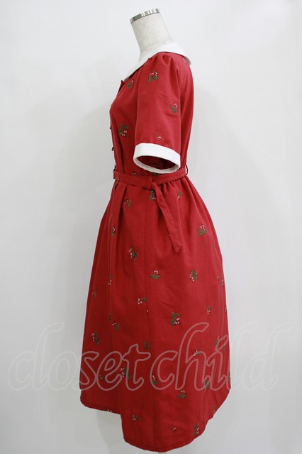 axes femme / さくらんぼ刺繍ワンピース Free レッド H-25-11-02-1012-AX-OP-NS-ZH
