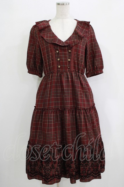 axes femme / ラッフル襟チェックワンピース M レッド H-25-11-02-1019-AX-OP-NS-ZH
