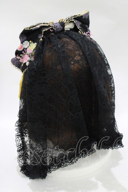 metamorphose / 花鹿の万華鏡ミニヴェール付リボンカチューシャ 黒檀 H-25-11-02-1080-ME-AC-NS-ZH