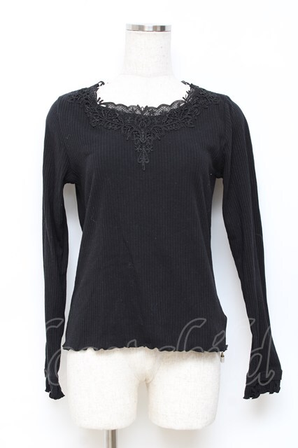 axes femme / モチーフレースリブプルオーバー M 黒 Y-25-10-28-078-AX-TO-SZ-ZY