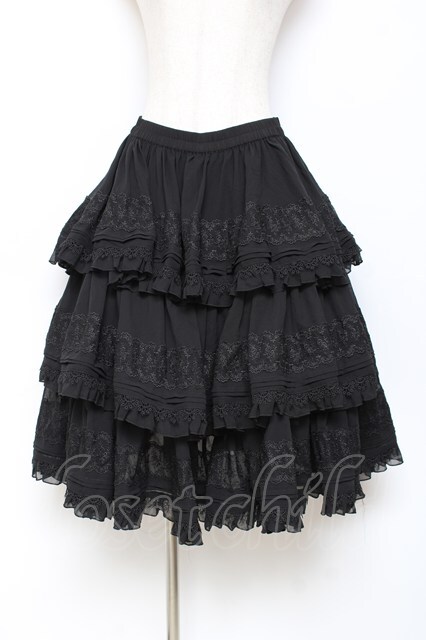 Hoshibako Works / 七色ワルツチュールフリルアンダースカート 黒 Y-25-10-28-149-LO-SK-SZ-ZY