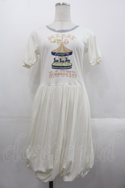 Fi.n.t Cherry / メリーゴーラウンドプリントバルーン半袖ワンピース アイボリーX青 I-25-10-24-109-LO-OP-SA-ZI