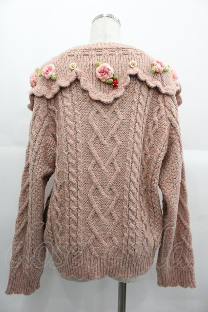 PINK HOUSE / Berry Roseモチーフ付きヨーク編みニットカーディガン ピンク I-25-10-24-087-LO-BL-SA-ZI
