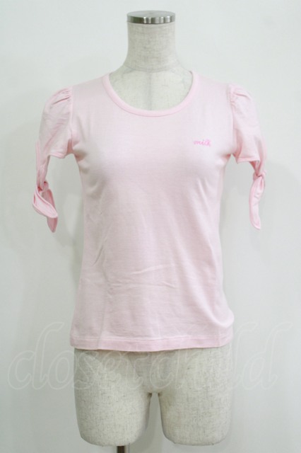 MILK / リボンスリーブカットソー ピンク H-25-11-03-071-ML-TO-KB-ZH