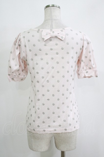 Emily Temple cute / ラメドットリボンカットソー ピンク H-25-11-03-065-ET-TO-KB-ZH