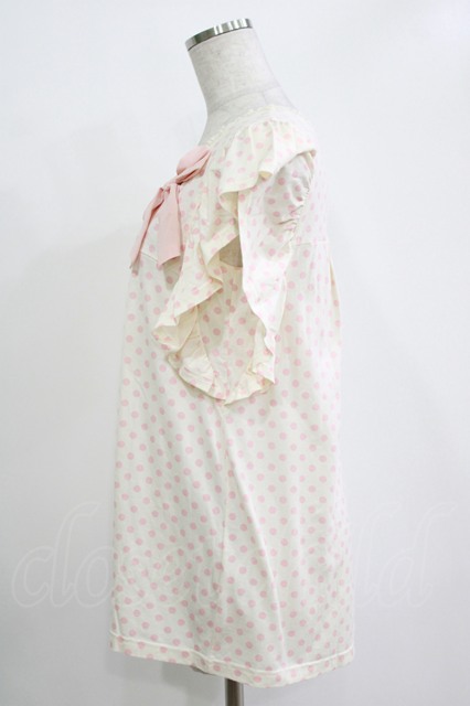 Emily Temple cute / フリルノースリーブカットソー オフ×ピンクドット H-25-11-03-056-ET-TO-KB-ZH [戻る]